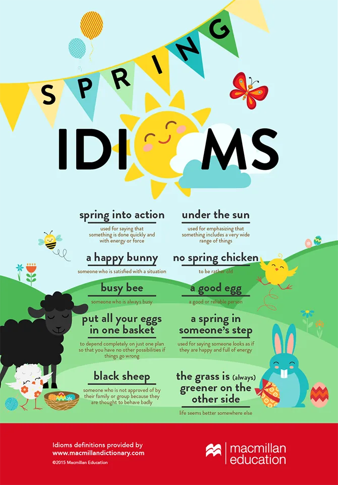 Spring into action with our dedicated infographic featuring all the spring idioms under the sun! Share the infographic with definitions from the Macmillan Dictionary, and download the accompanying activities sheet with teaching ideas and idiom cards to use in class.