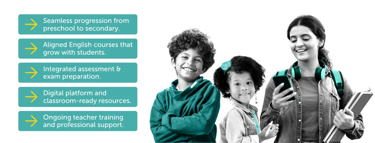 The Pioneers Path brings together a trio of courses that encompass preschool, primary school and high school. This ensures that students, teachers and school administrators are fully supported across all key educational stages in a long-term partnership that guarantees academic success. With a focus on depth, continuity, and rigor, it helps schools deliver outstanding English learning outcomes across all levels.